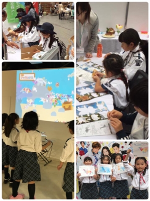 チャリティードリンクをお渡しするお手伝いをしたり、企業ブースではエコを学んだりしました。