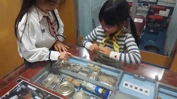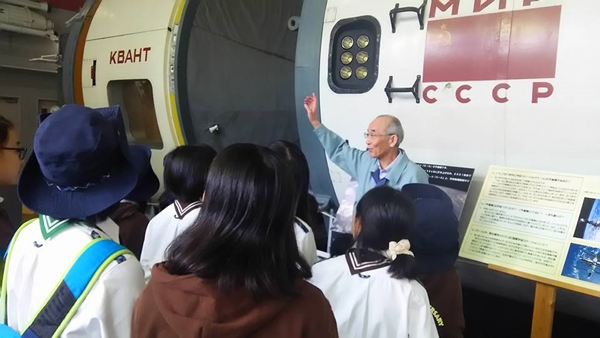 子どもたちは、30年前の宇宙食やシャワーを浴びる方法に興味津々でした。