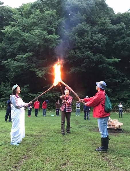 - キャンプファイヤーの点火