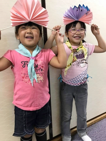 - 園児たちは可愛いうちわを作りました。